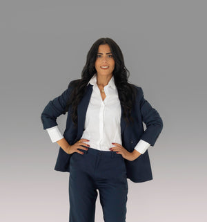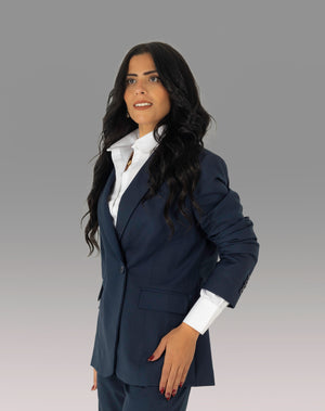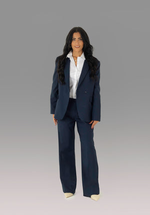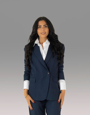 A classic Navy Blue tailored side button blazer featuring a sleek straight fit, perfect for professional and elegant looks.
